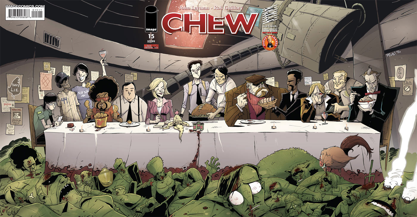 Stewart R: I haven’t reviewed an issue of Chew for a little while now and that’s not because it’s been lacking for quality, oh no, but just purely for the fact that it’s such a consistently solid read that I was fearful of repeating my love for it to the point of redundancy. Now, you may think that because I’ve said that things must have taken a downward turn, but they really haven’t; this is still a brilliant character-led comic, full of fun, dark humour and the odd supernatural or science fiction twist. The pre-release blurb wasn’t wrong when it mentioned this being a turning point issue with a neat, if somewhat signposted twist that will alter things for many an issue to come as promised, as well as a mysterious occurrence that I look forward to learning more about in the next issue. The introduction of Tony’s extended family is a grin-fest and the triple gatefold cover is a cool little treat especially considering that this is a $2.99 comic. Seriously, why aren't you picking this up? You know who you are... 8/10